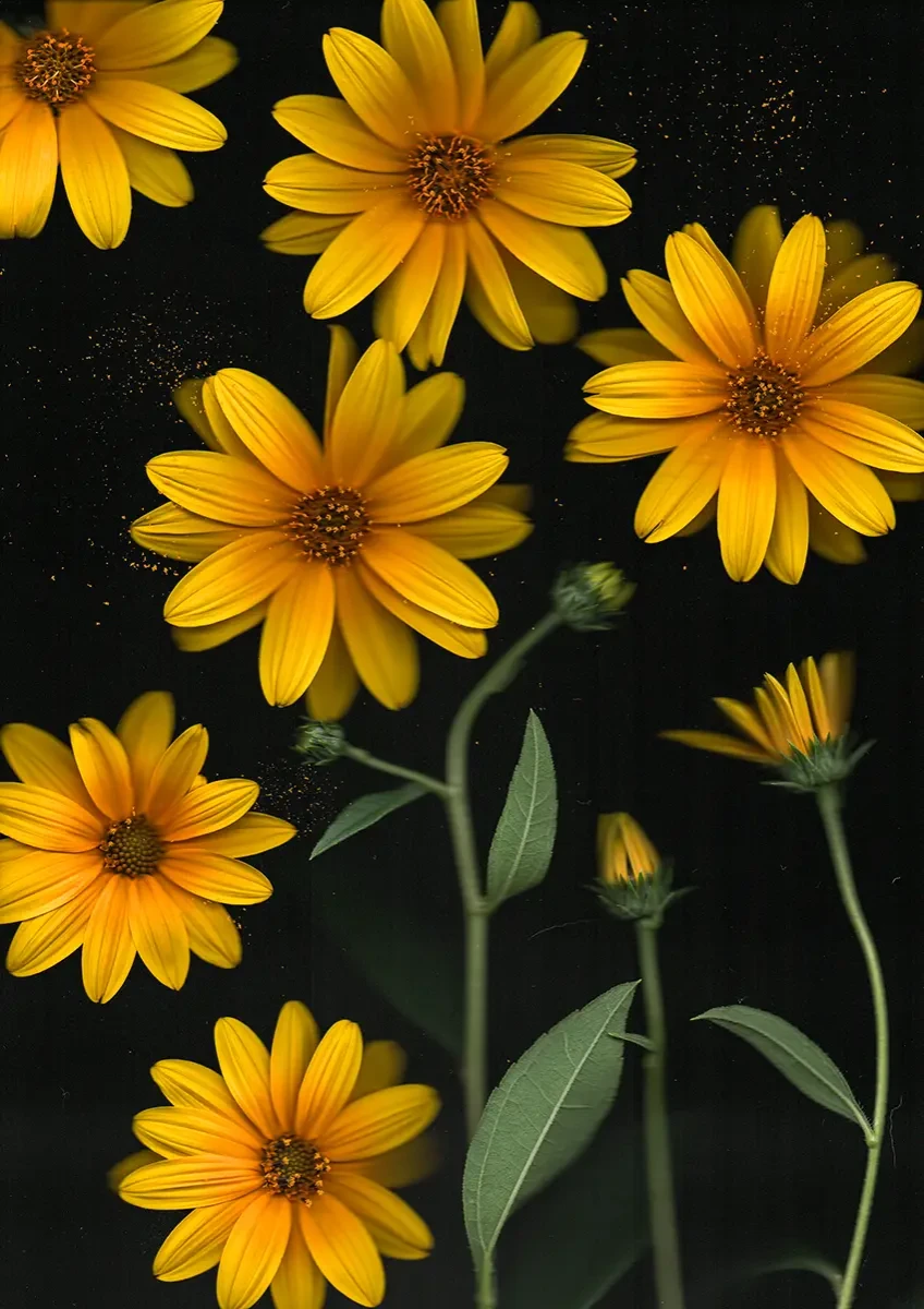 Gli stessi fiori e semi sono stati inseriti fisicamente nelle stampe, rendendo materica l’immaterialità della fotografia. Dove la stampa e l’elemento di natura quasi non si distinguono.Lo studio e la sperimentazione dell’utilizzo fotografico dello scanner ha permesso di realizzare visioni artistiche attraverso il movimento.